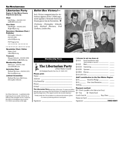 San Mateo Libertarian newsletter August 2003
